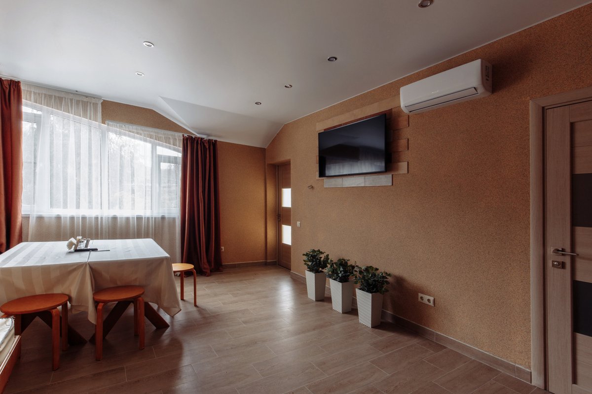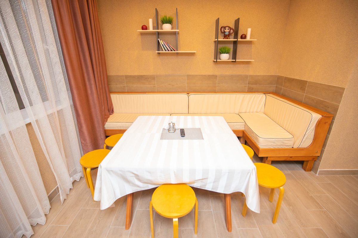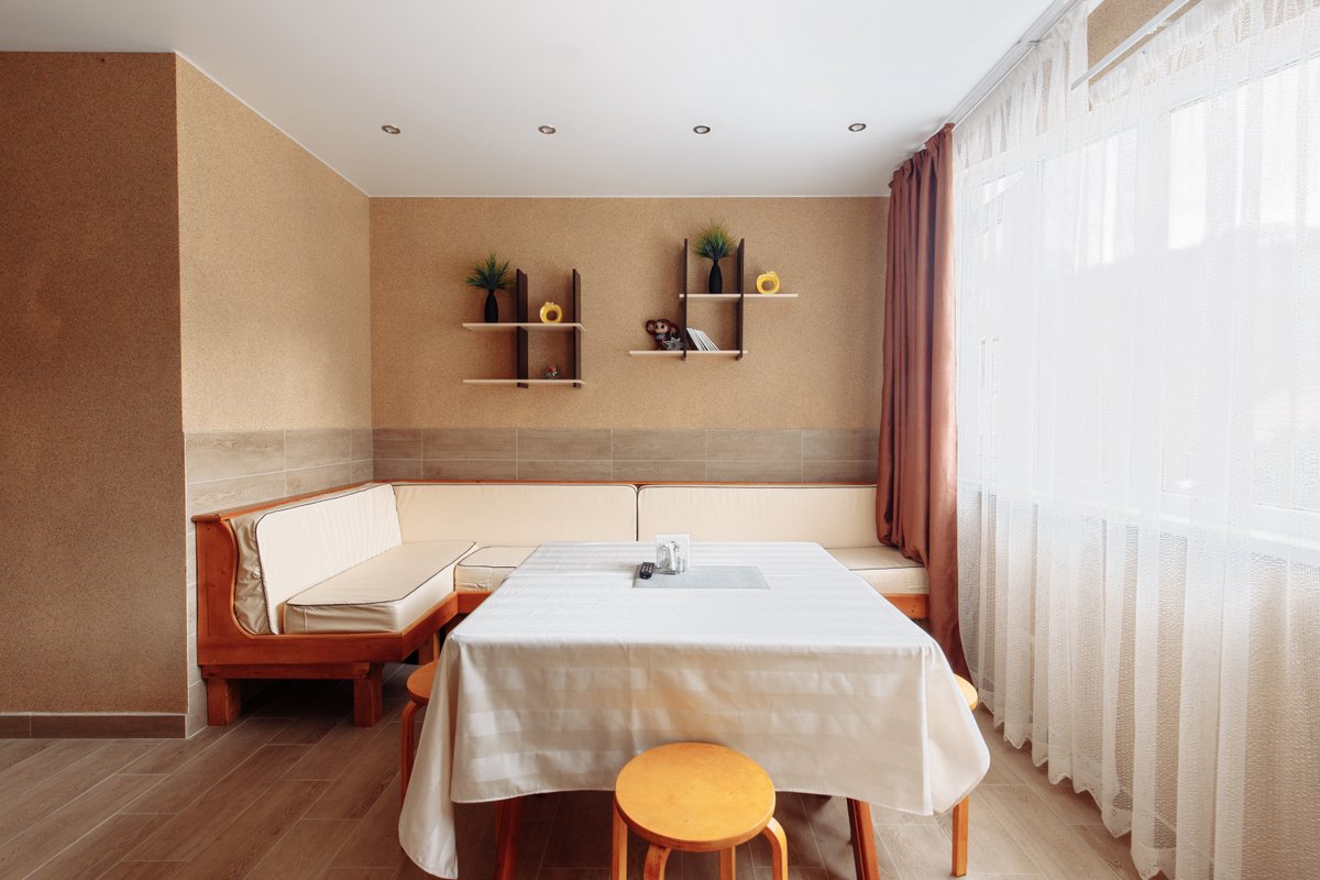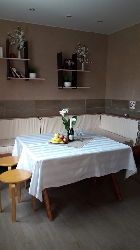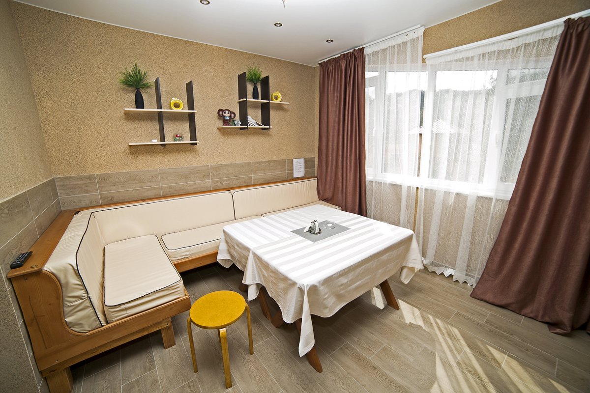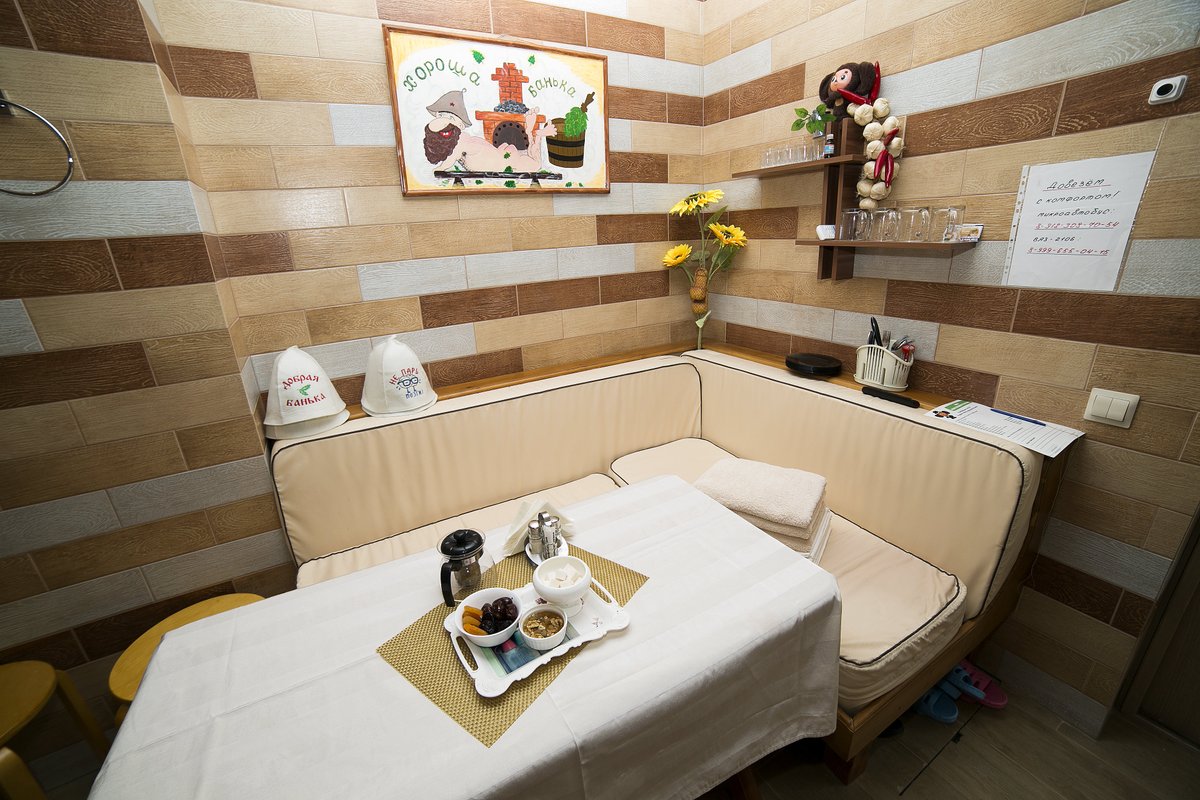 Не хочется в бассейн? Не беда! Вместо этого можно провести время в нашей комнате отдыха. Мы ставили своей целью создать здесь уютный, практичный интерьер из преимущественно натуральных, безопасных материалов, подобрать мебель, которая будет в равной степени удобной и эстетичной. Надеемся, что вам понравится! У нас нет собственной кухни, но мы ничего не имеем против, если вы придете со своей едой и совместите посещение бани с небольшим застольем. Главное помните, что плотная трапеза незадолго перед посещением парной - это не самая удачная идея, по мнению терапевтов. А вот после парной - совсем другое дело!
