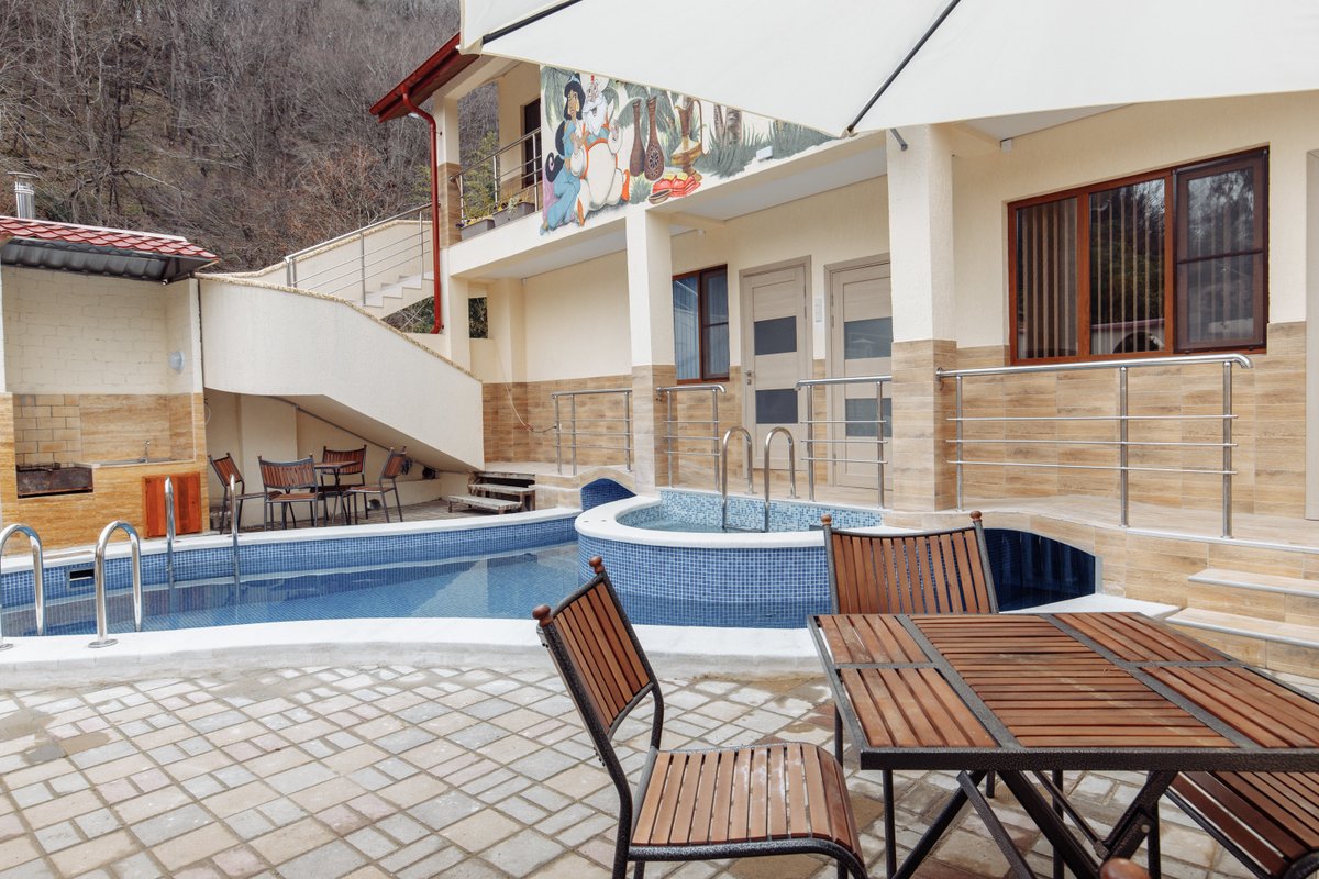 А если вы входите в число тех счастливчиков, кто хорошо реагирует на смену температур - вас ждут джакузи и бассейн. Именно контрастным водным процедурам приписывается максимальный тонизирующий и общеукрепляющий эффект. Мы тщательно следим за качеством купальной воды, у нас установлено современное оборудование для ее очистки - ведь мы знаем, насколько это важно для хорошего самочувствия и спокойствия наших гостей.