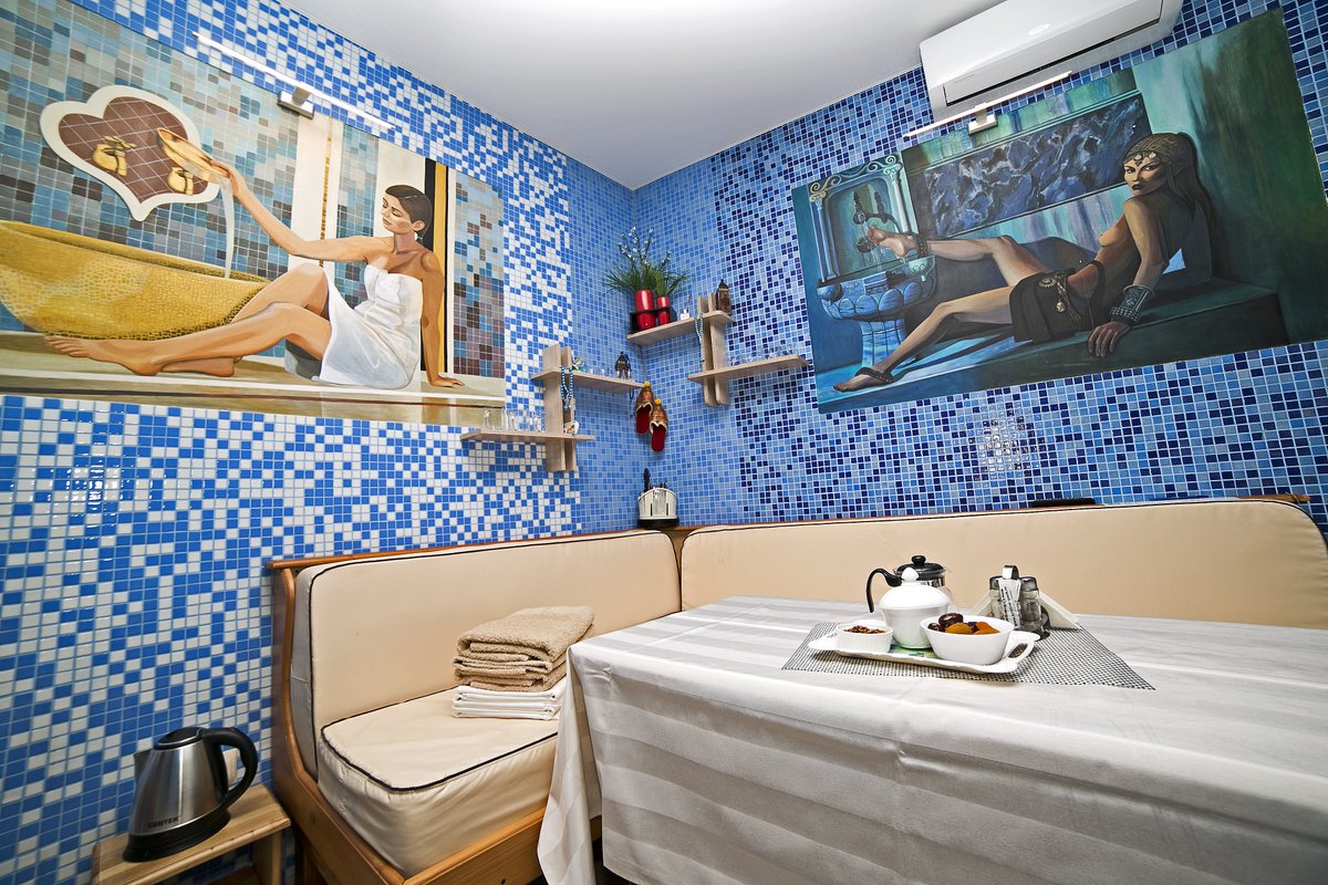 Мы предлагаем два вида парных на выбор наших гостей: традиционная русская баня и турецкий хамам. Турецкая баня - одна из самых щадящих в плане температуры воздуха, она замечательно подходит для мягкого, расслабленного отдыха и совмещения с процедурами по уходу за телом. Русская парная обеспечивает более экстремальные ощущения, тренирует сердечно-сосудистую систему. Но обе обладают своим собственным, неповторимым шармом!